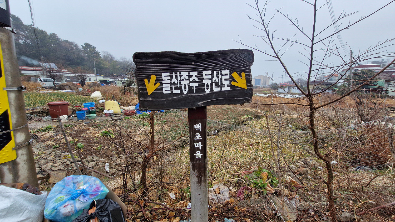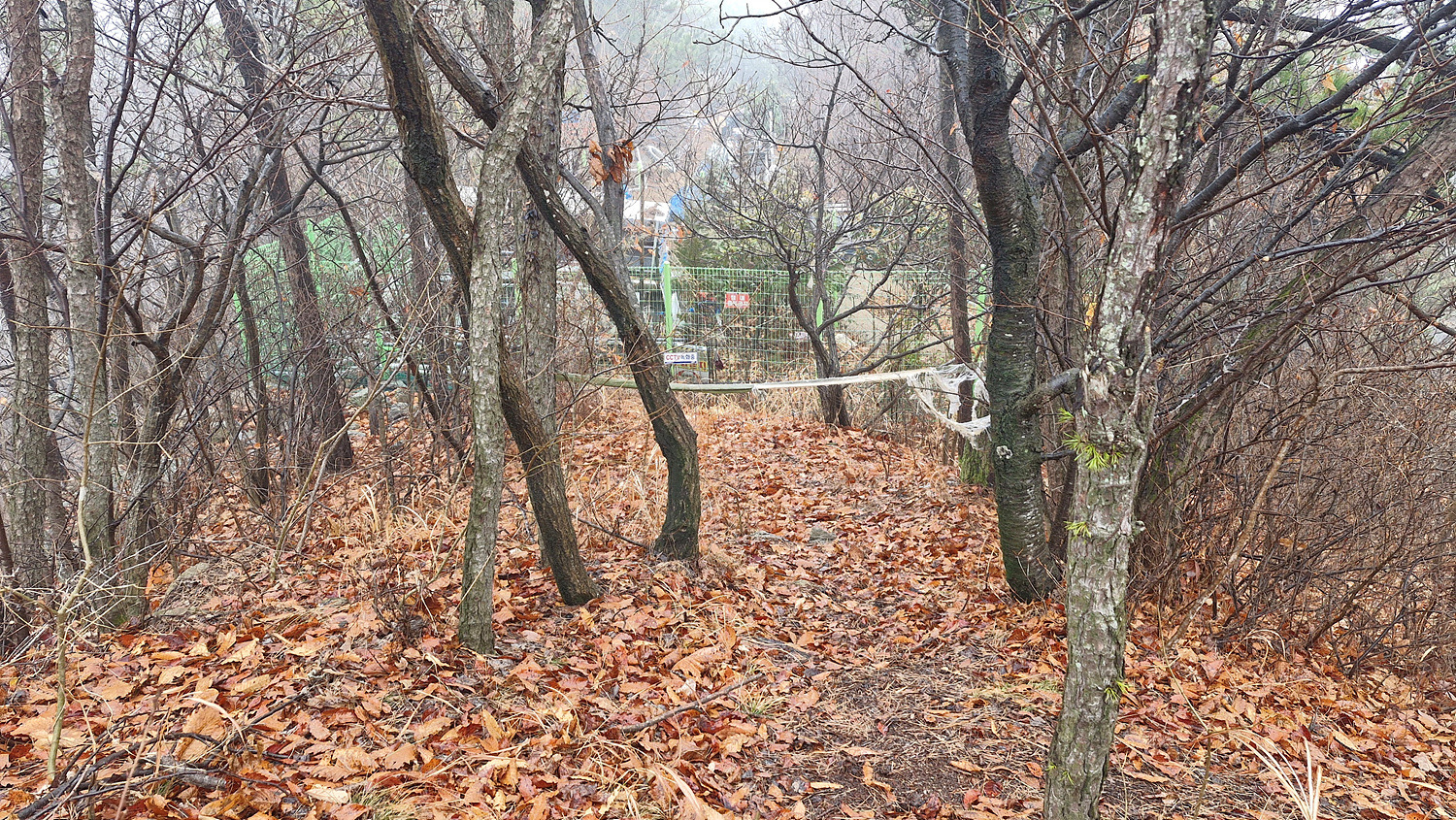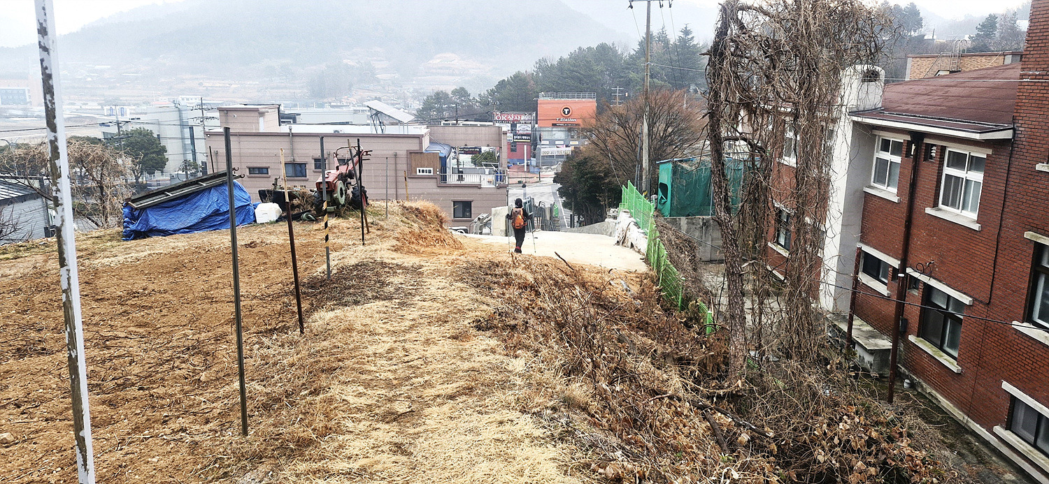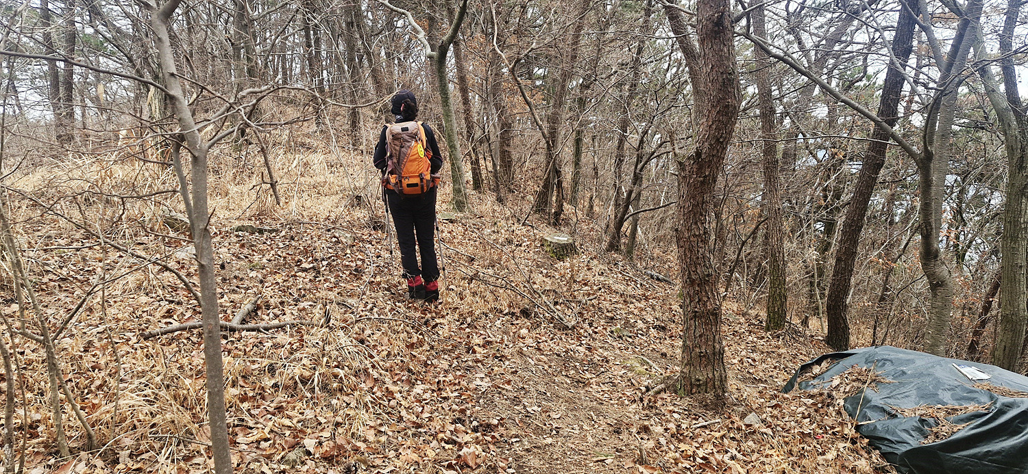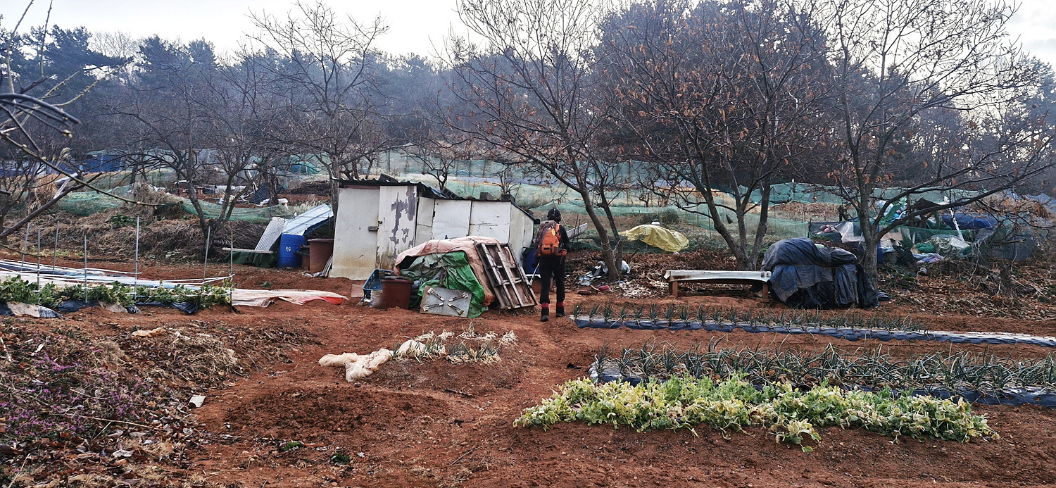 올라서니 쓰레기가 널려있는 밭이 나오고 길은 없다.