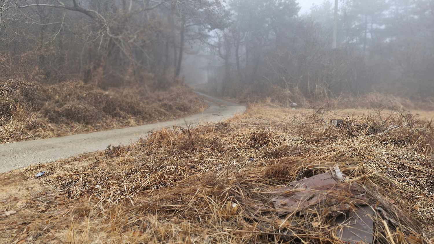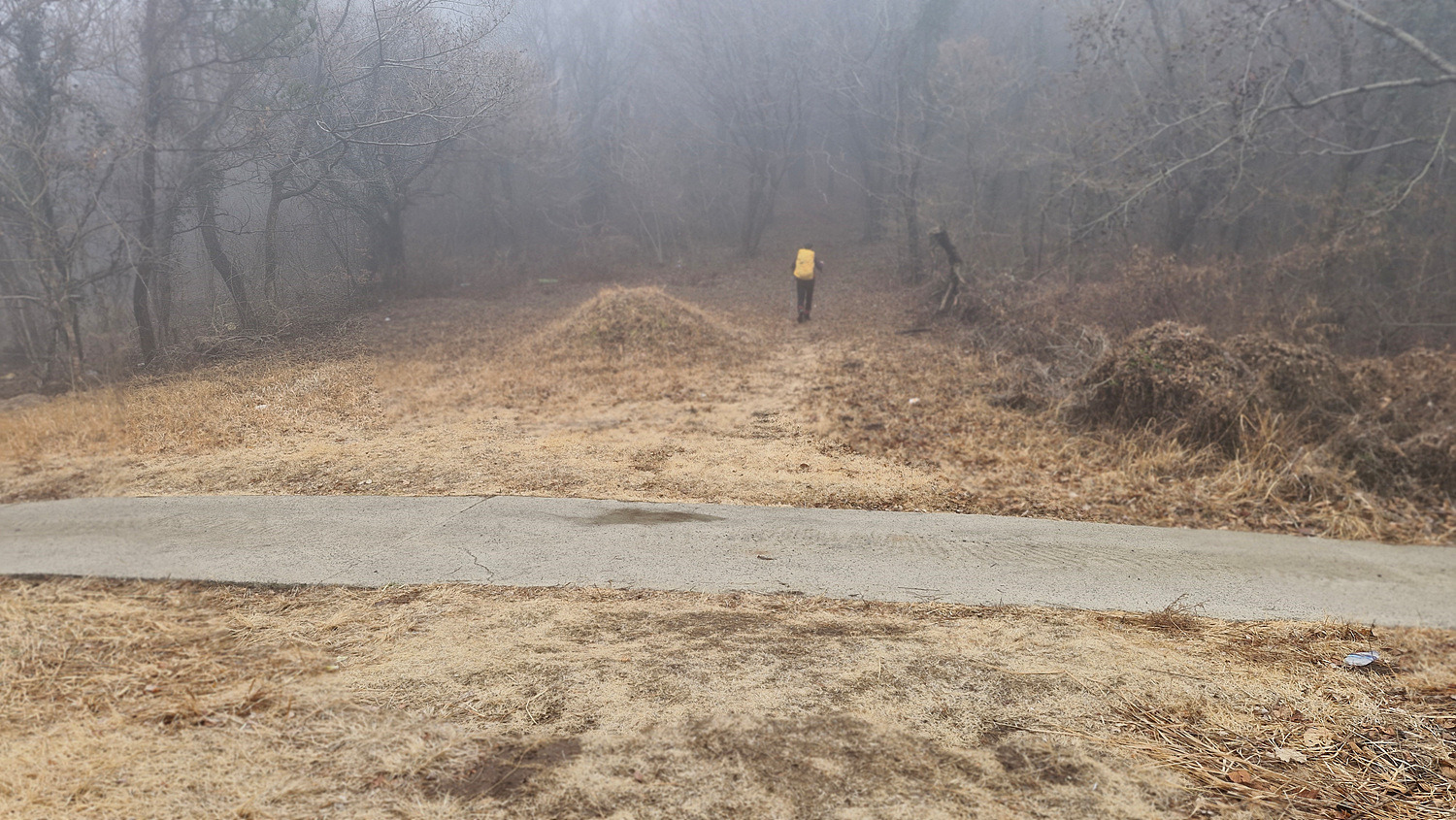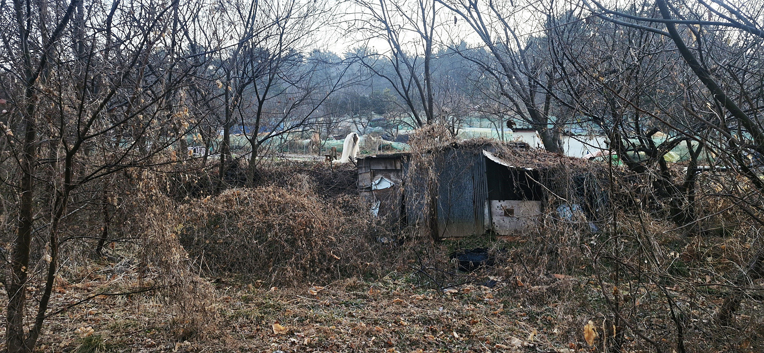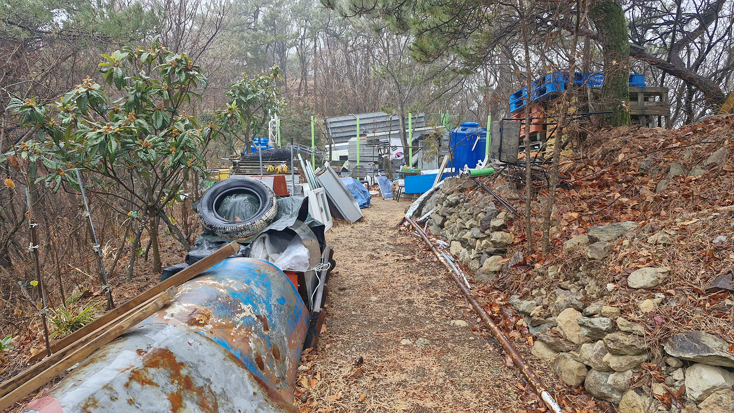 올라서니 쓰레기가 널려있는 밭이 나오고 길은 없다.