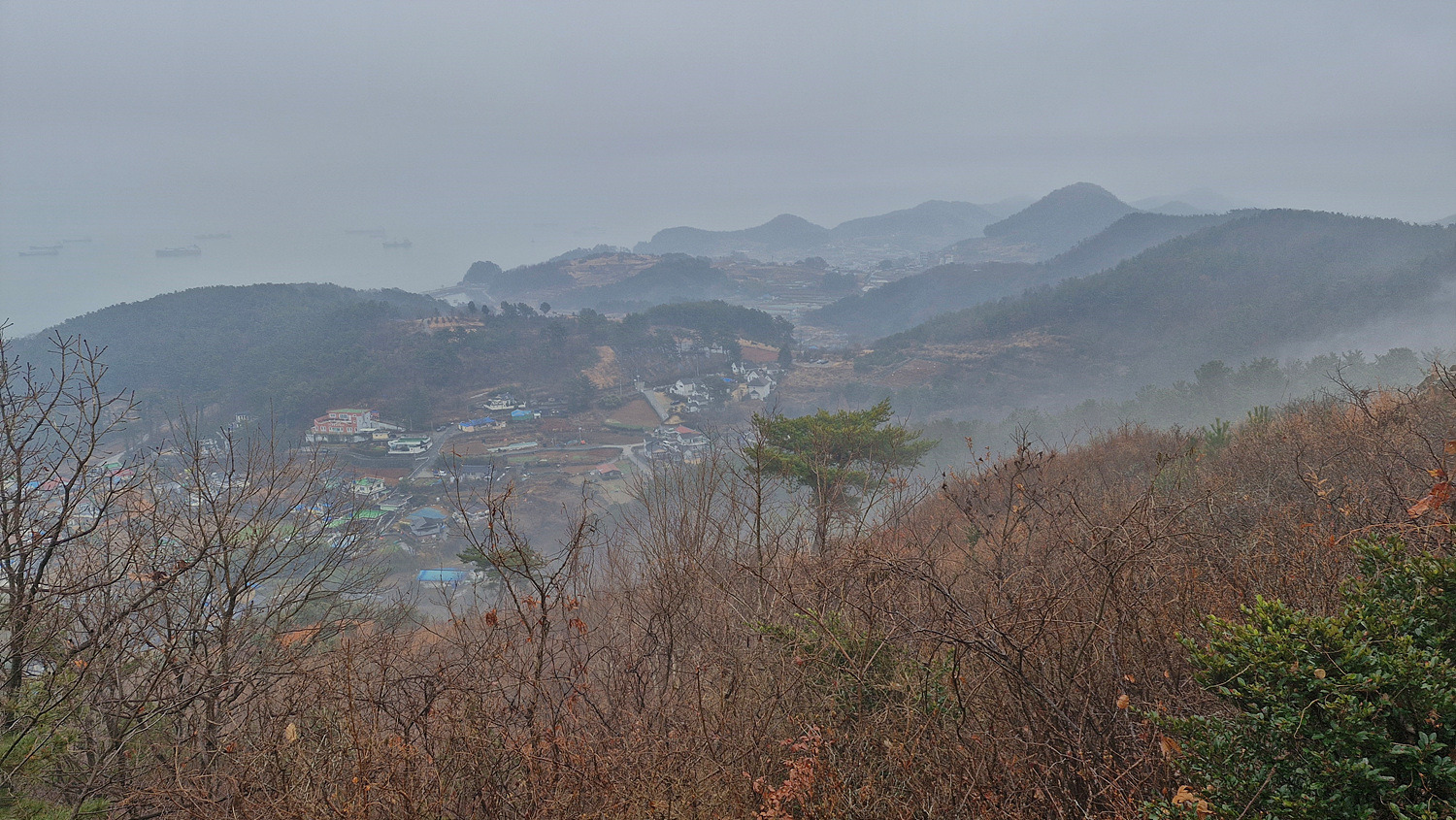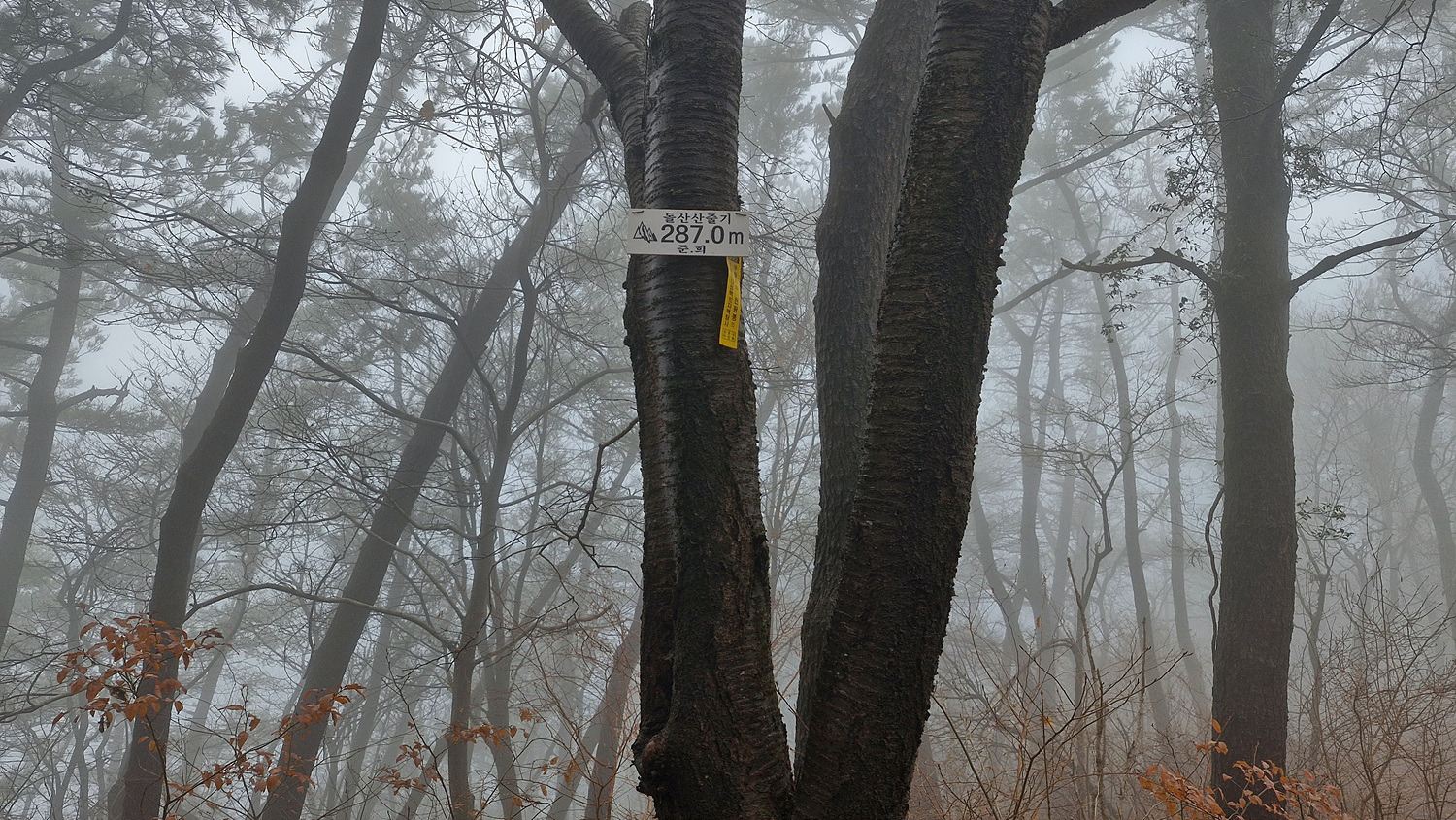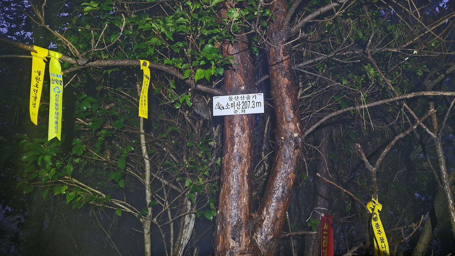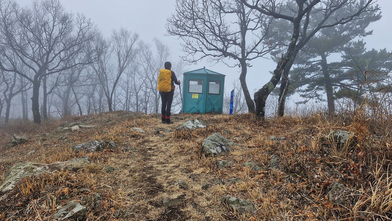 안개속이라 보이지는 않는다.