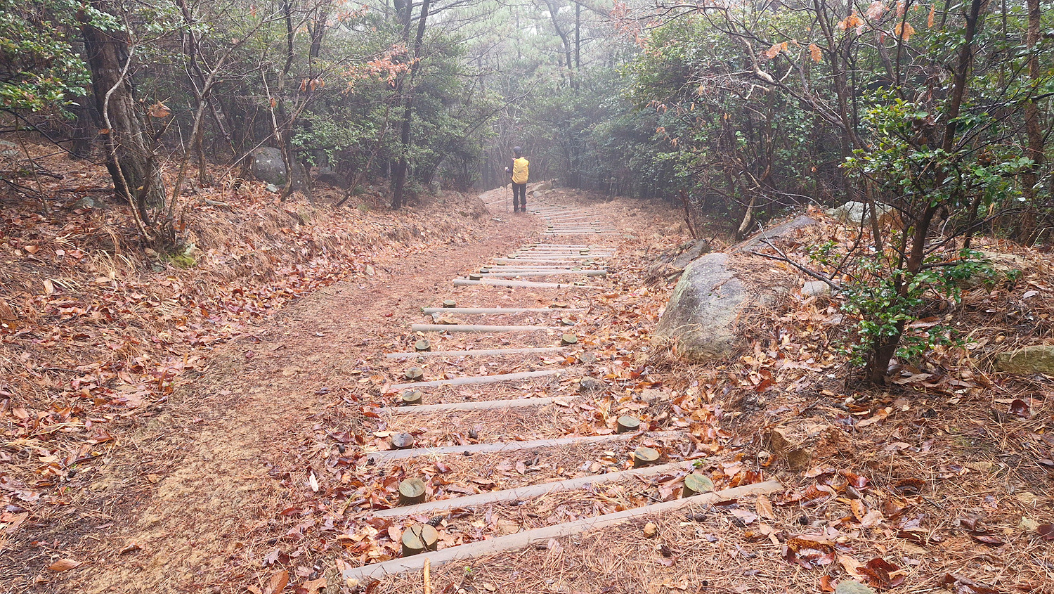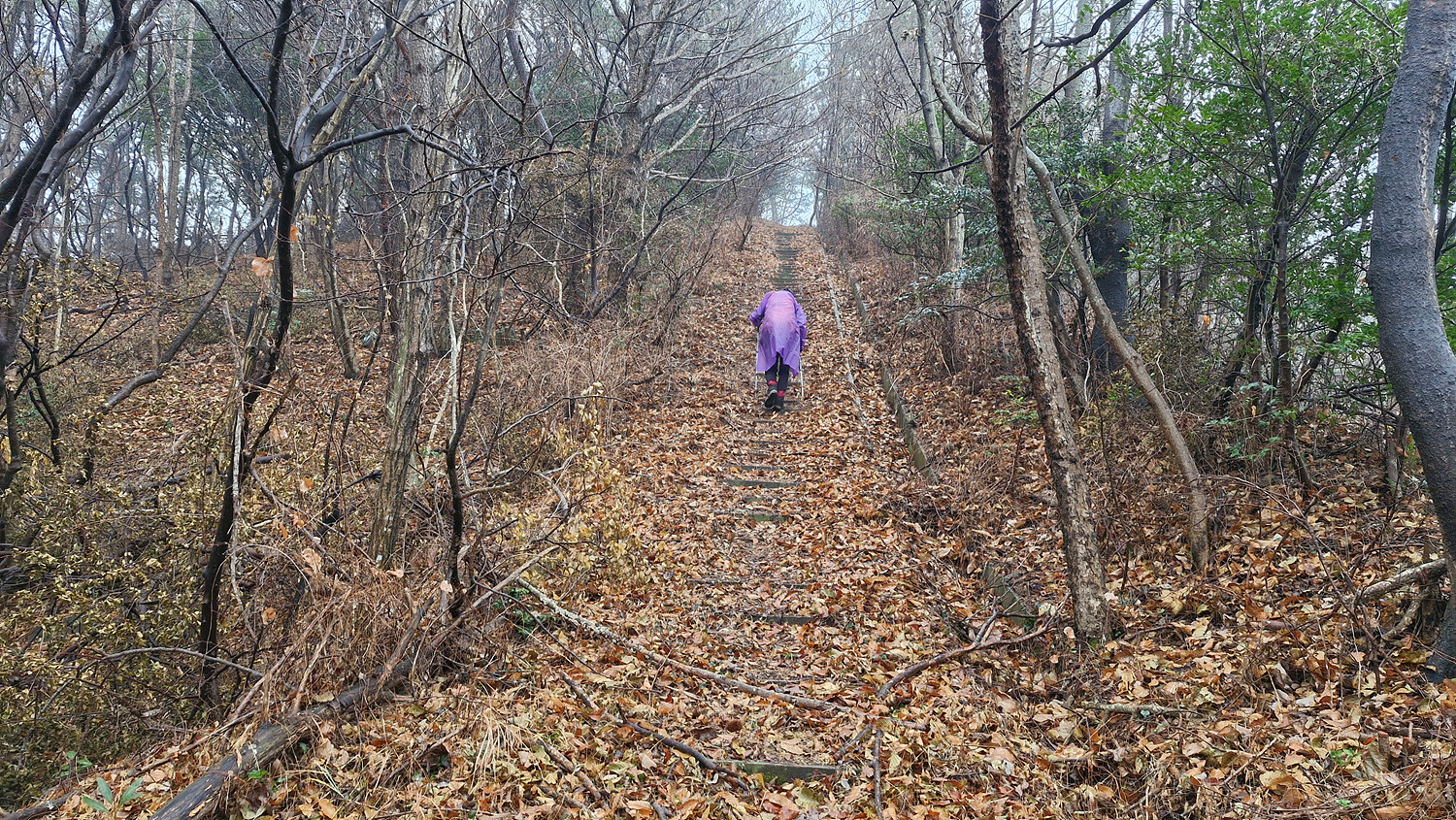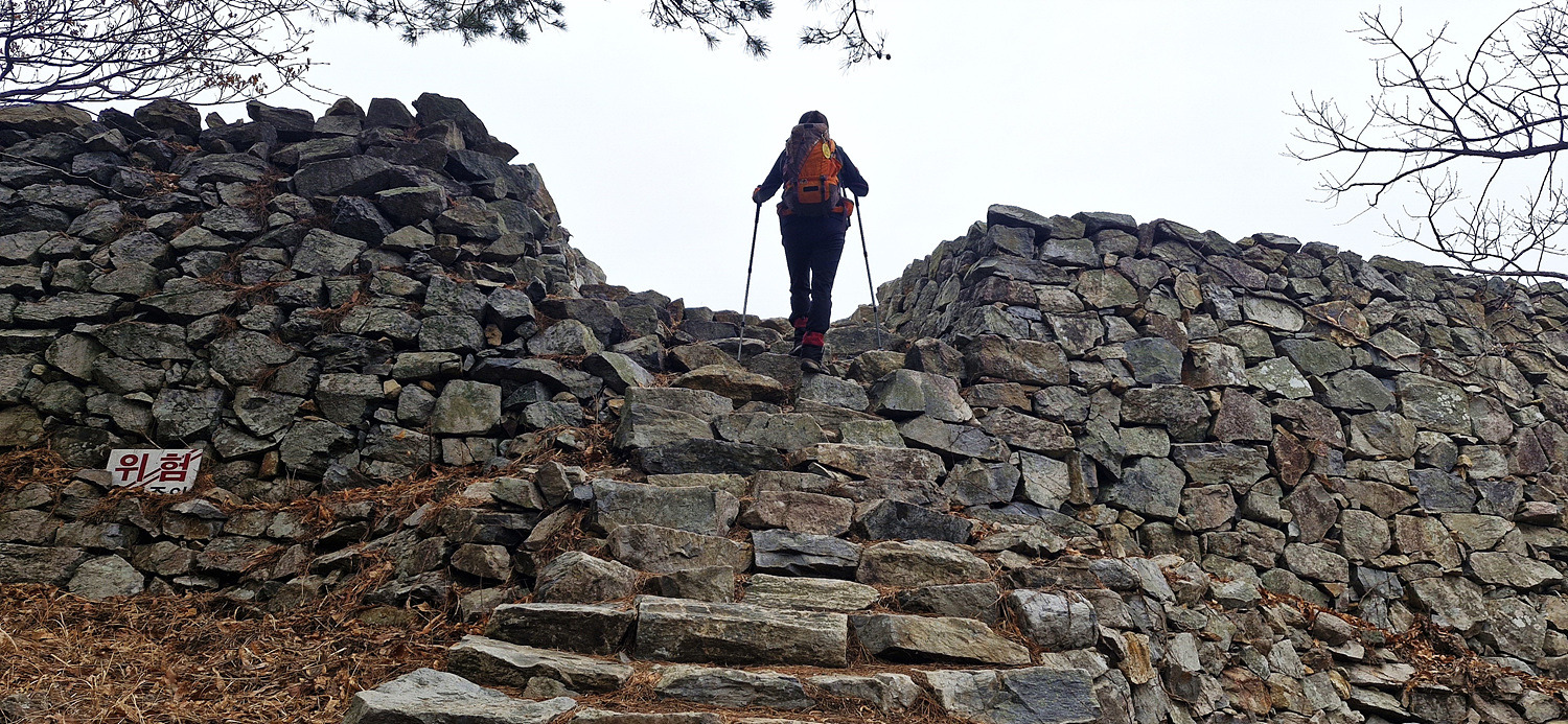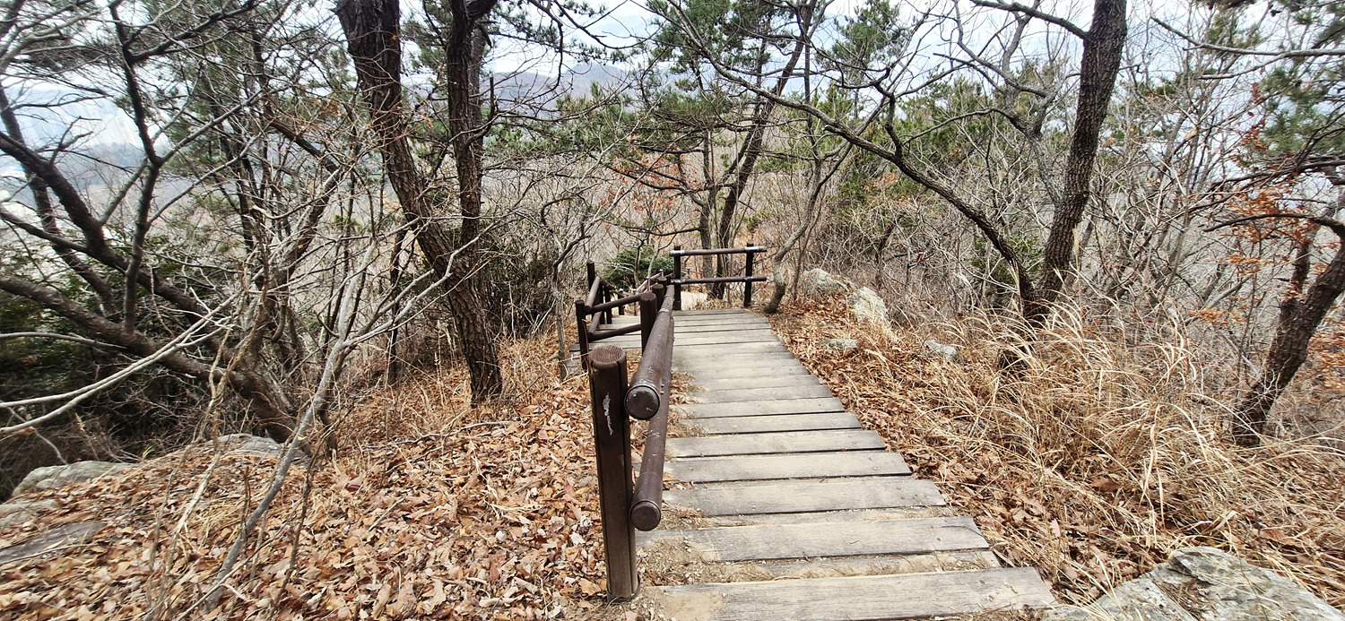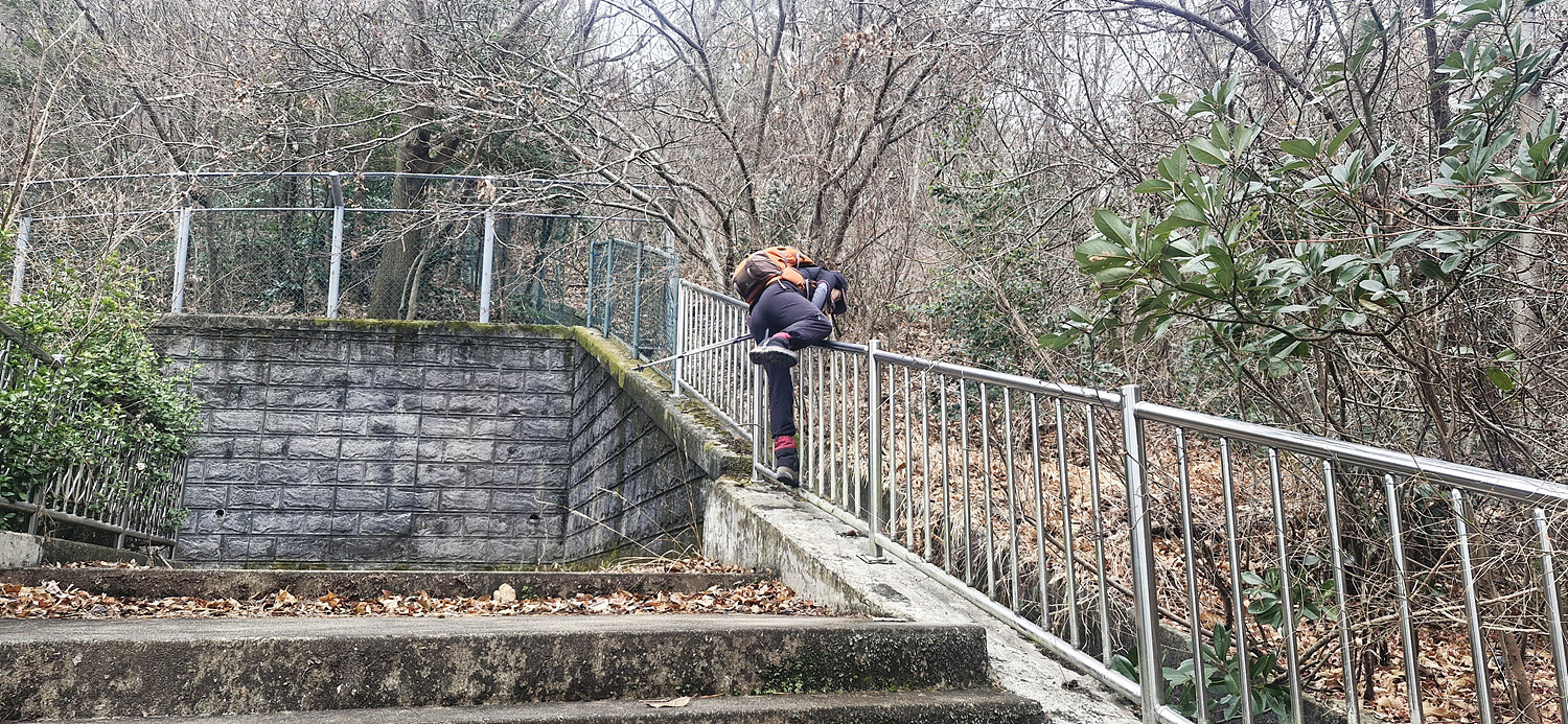 계단밑은 절벽 암릉인데