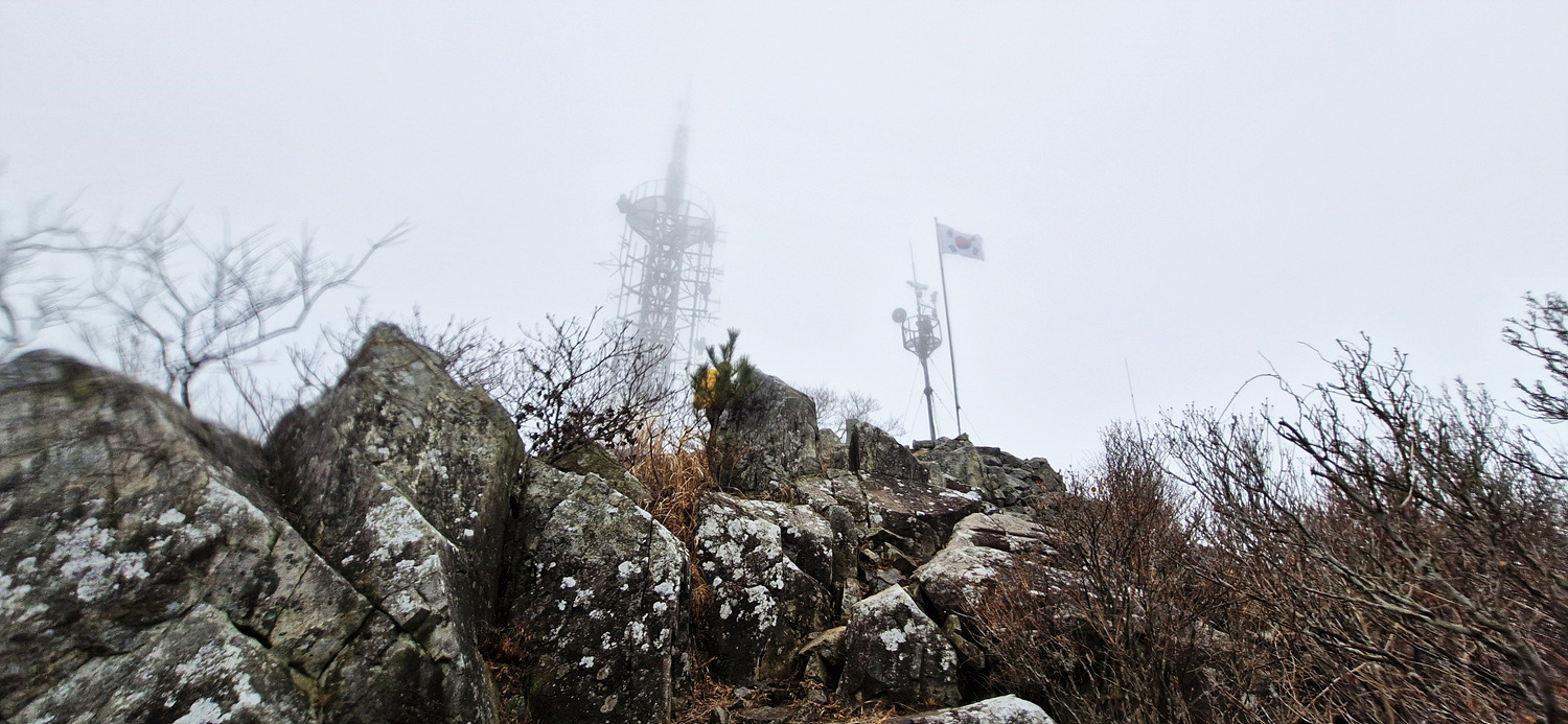올라 섯는데.무인 산불감시탑이 있을 뿐 정상석 하나가 없다.