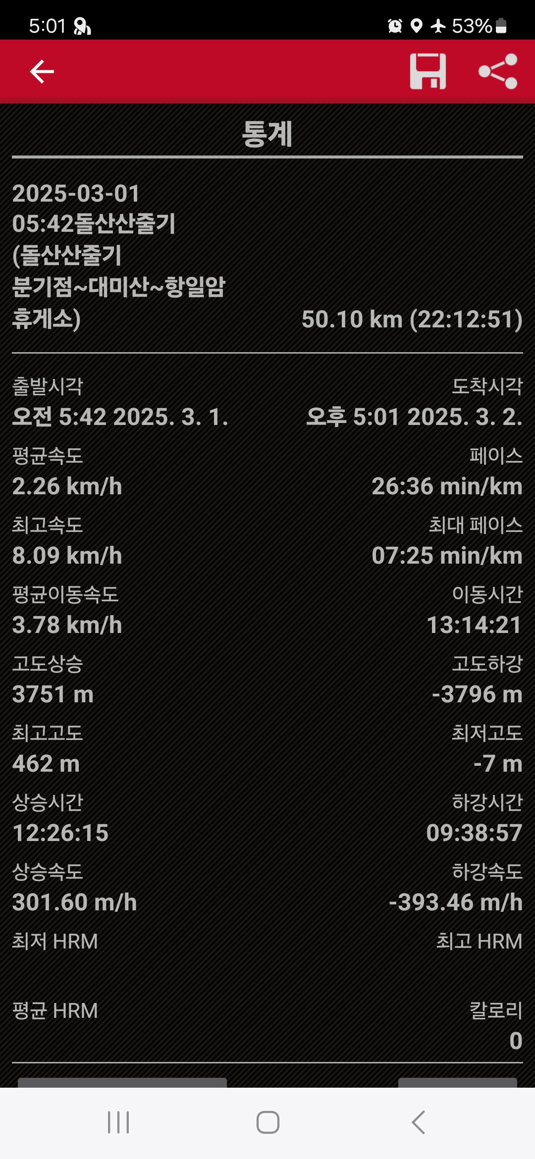 거리 및 소요시간=49.7(접0.4)km/22시간12분