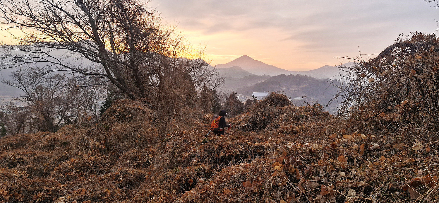 돌아보니 새벽에 지나온 무선산이 보이고
