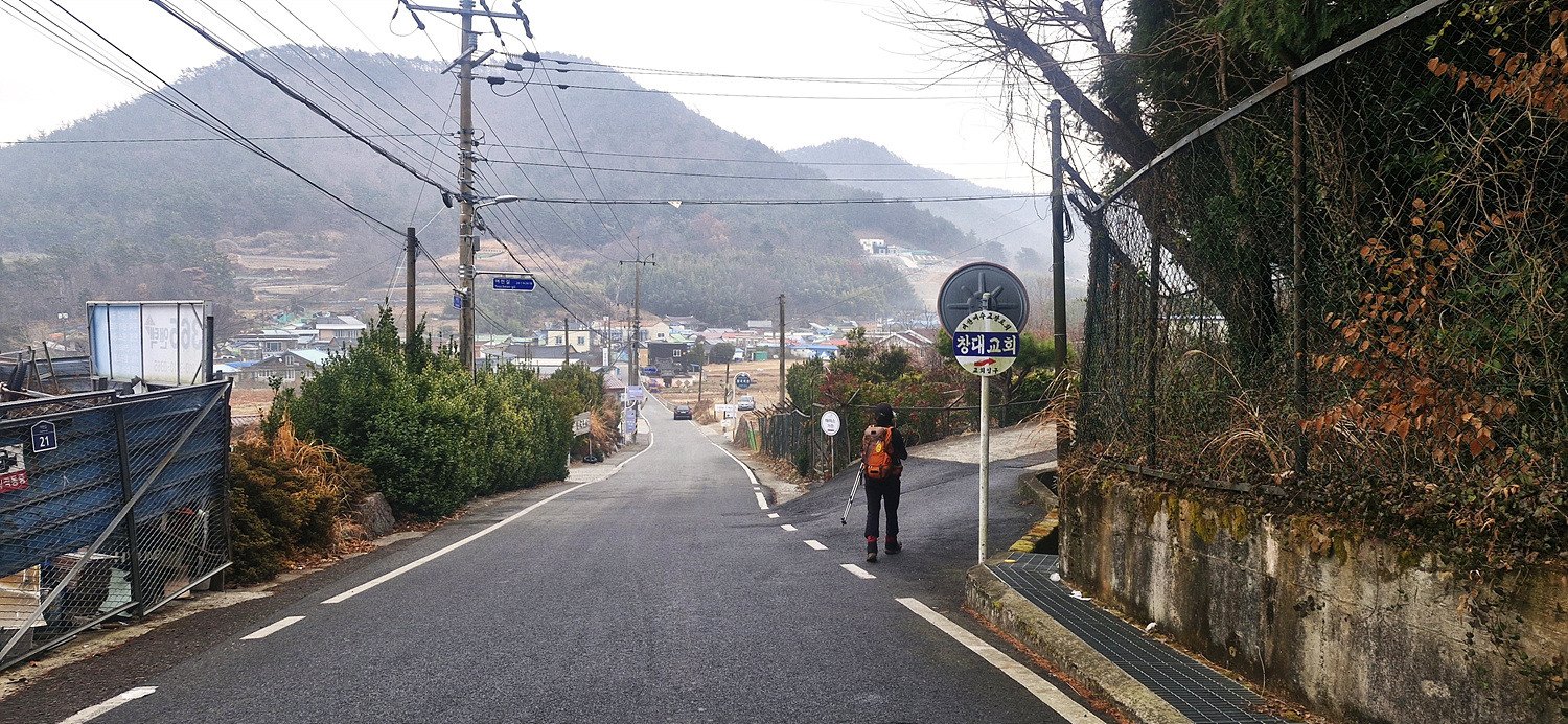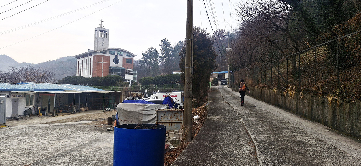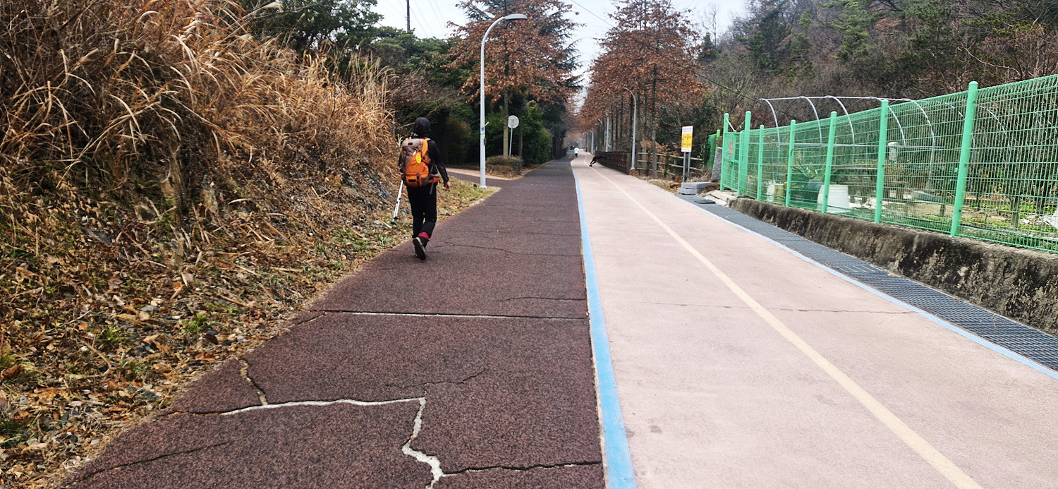 도로길을 잠시 따라 가다가 우측으로 방향을 틀면