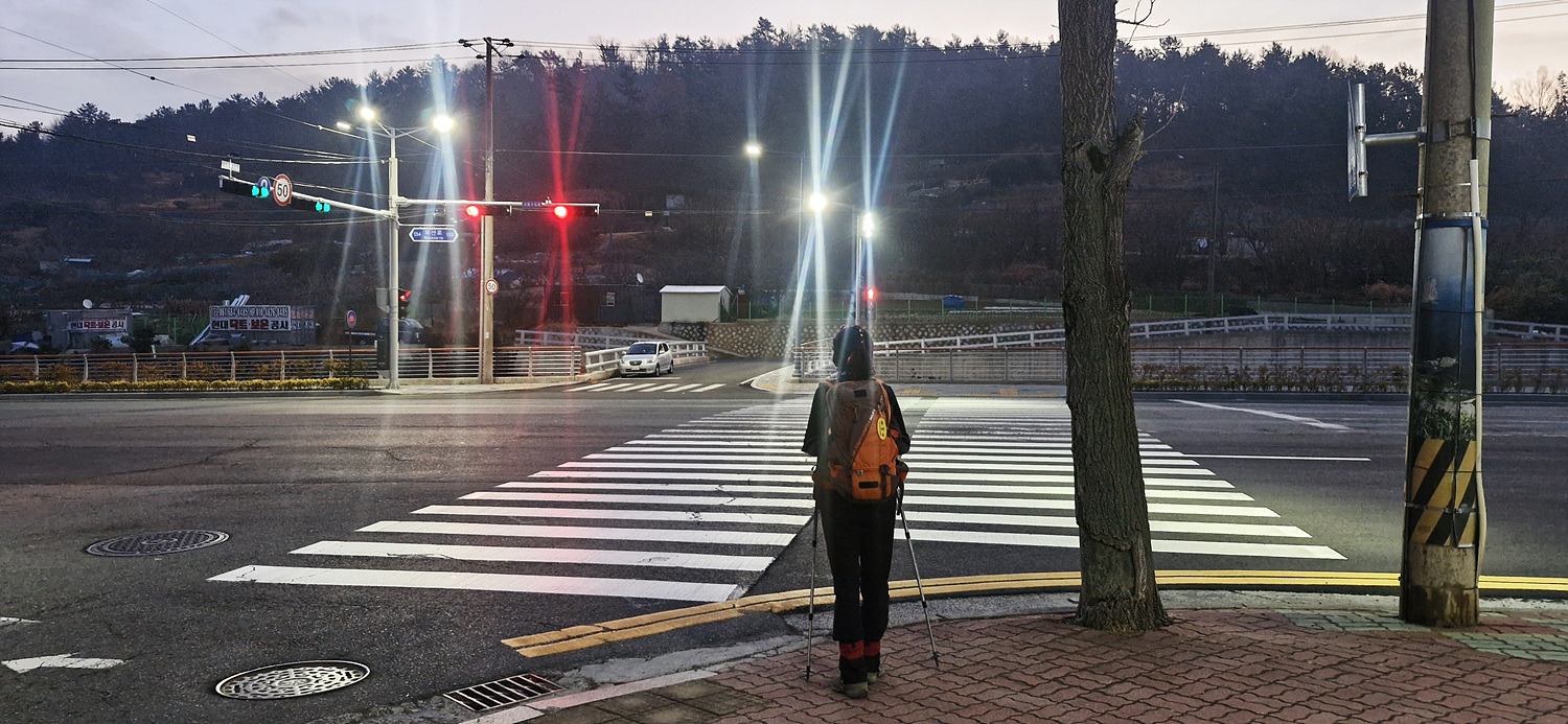 136.0봉 직전에 도로는 신호에 따라 건너고