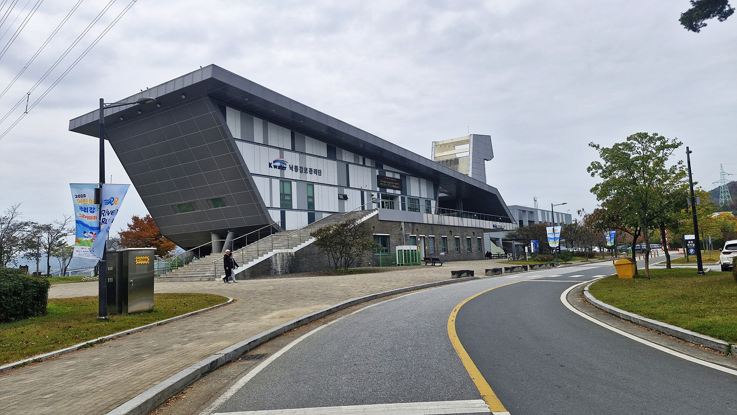 주차장진입을 막는다. 강정보 주차장에 주차를하고 화장실 볼 일을 보고