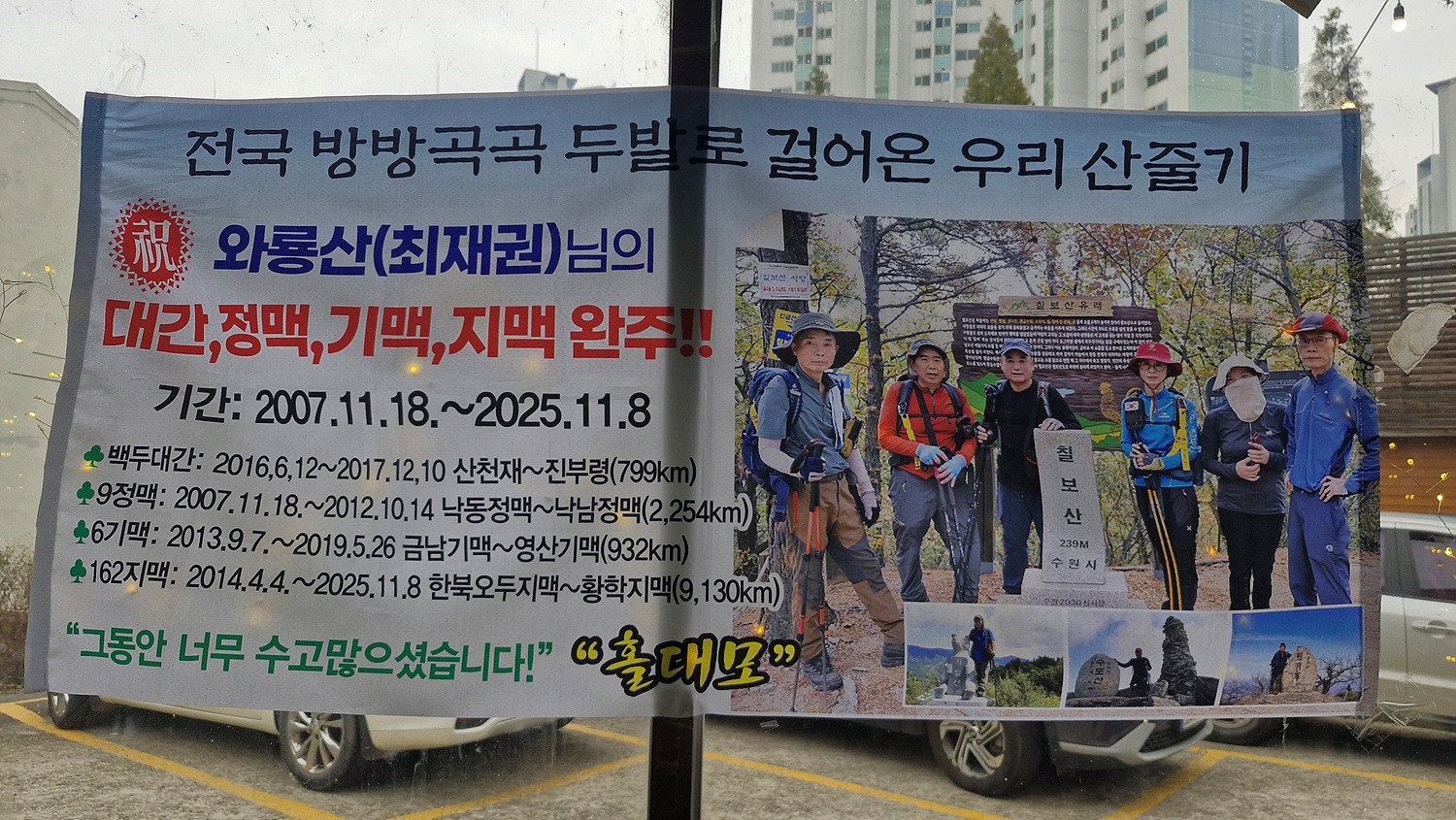 지맥은 물론 대간.정맥.기맥 전 지맥을 18년에 걸쳐