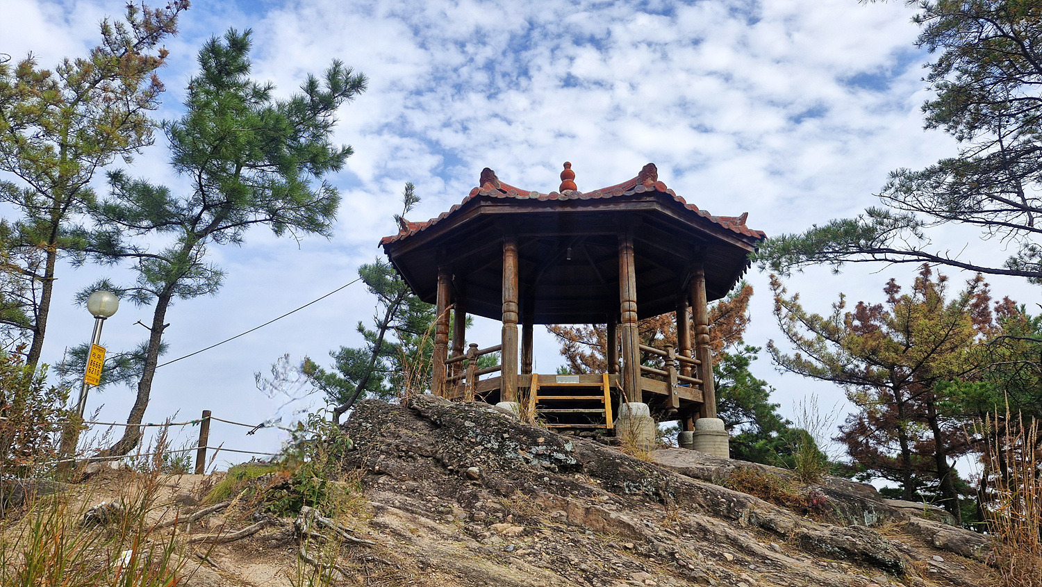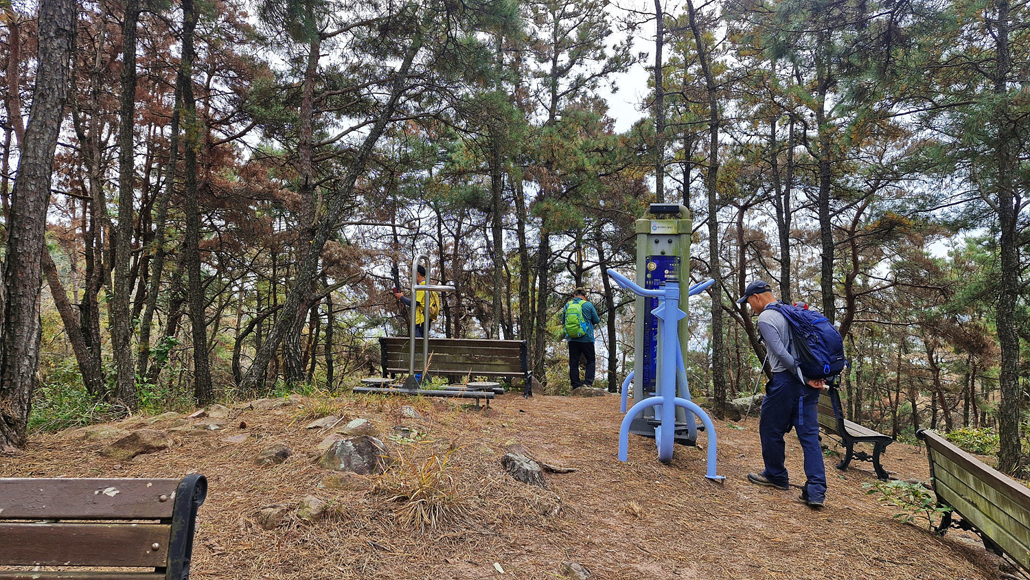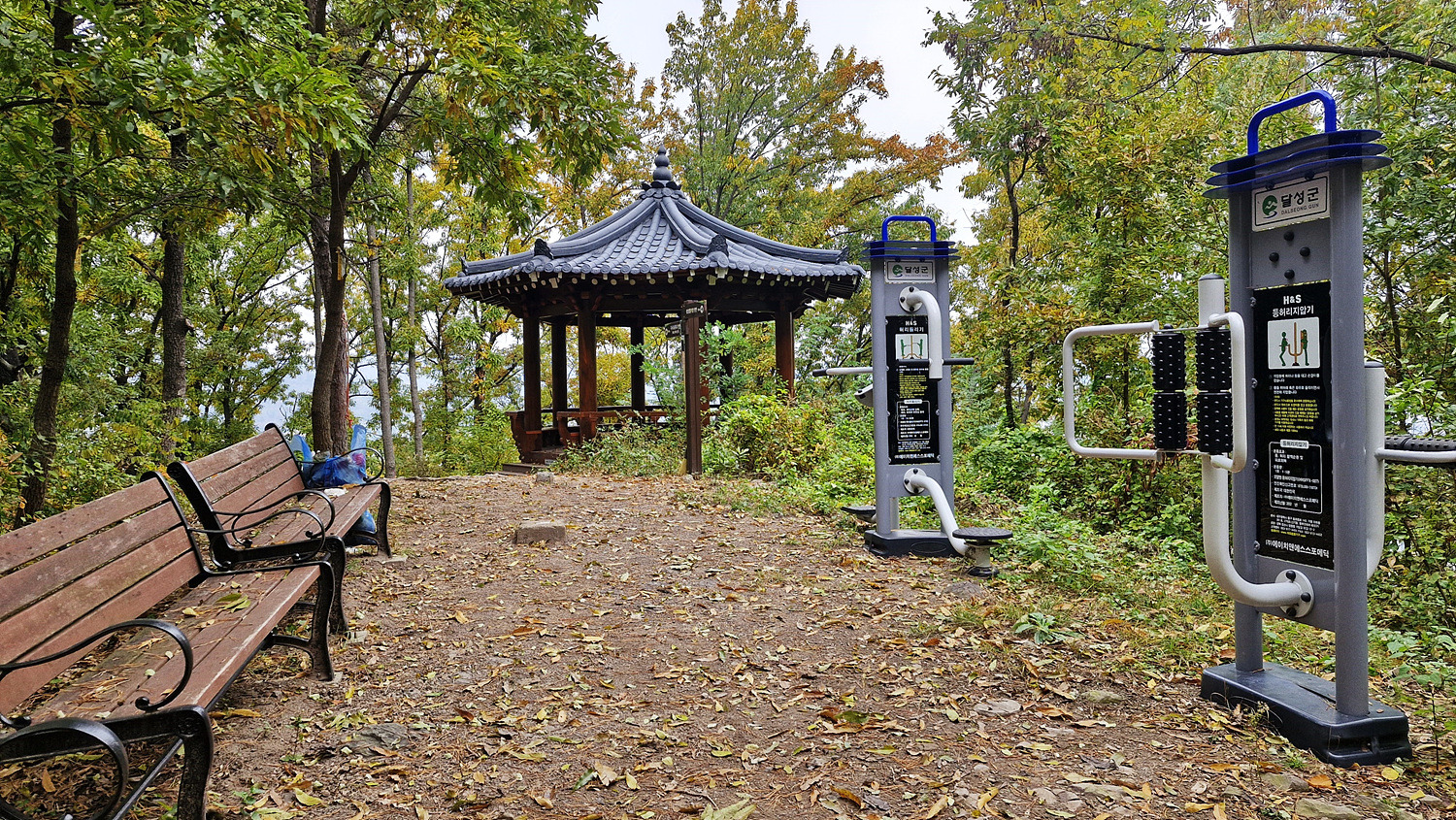 정상에는 정자와 운동기구가 놓여있다.