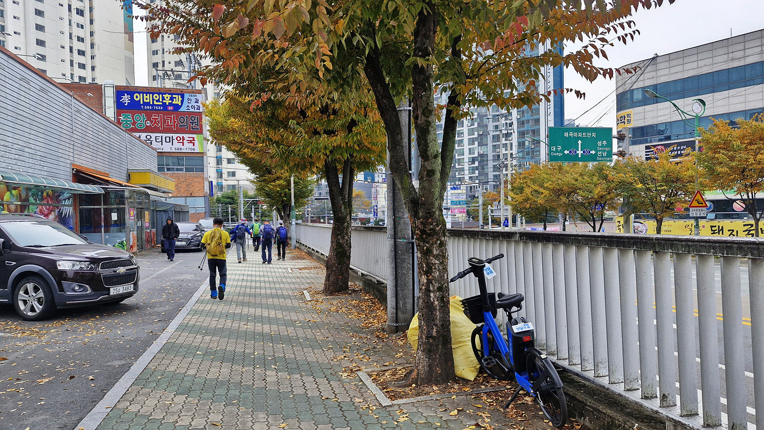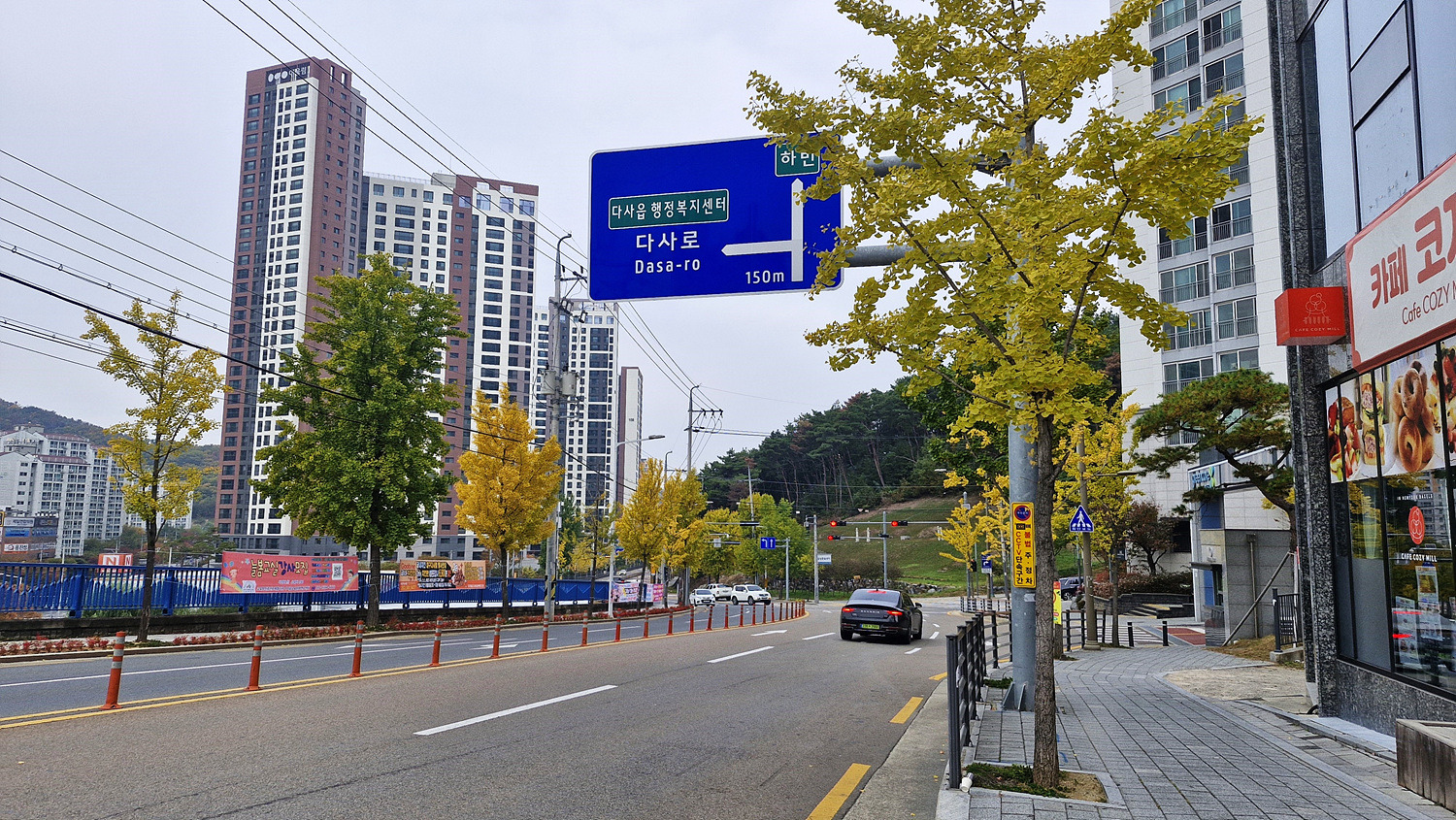 다사읍내에 내려서고 잠시 도로를 따른다.
